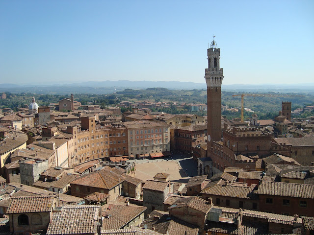 This was the magnificent view that greeted us as we drove into the beautiful city of Siena. Siena is built on three hills and is surrounded by well-preserved walls and filled with fine examples of Gothic architecture. It has one of the world's most unique piazzas..... The Piazza del Campo (shaped like a shell) which is home to the famous horse race..... the Palio of Siena, which takes place twice a year.