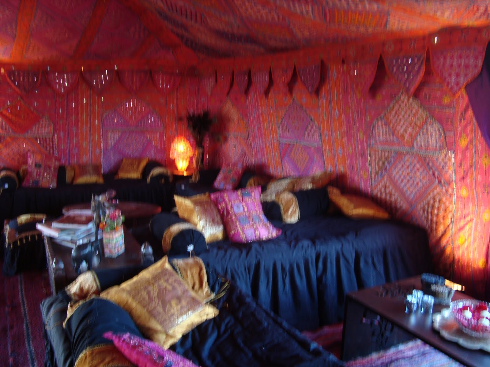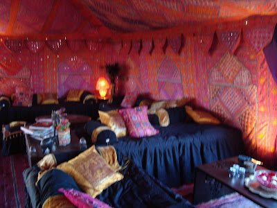 They had had tents erected outside, which were decorated with Indian fabrics, wooden elephant tables and black sofa's with brightly coloured cushions ..........